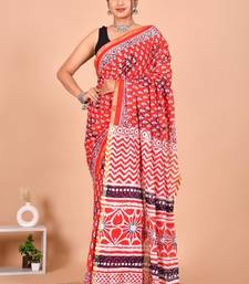 | Product Name | Red Block Print Cotton Zari Sarees With Running Blouse | |