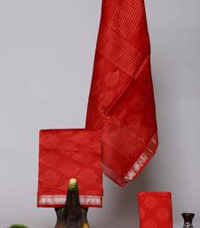 Red exclusive new hand block printed maheshwari silk zari border suits pieces unstitched