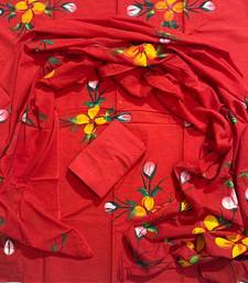 Red hand block printed cotton suit with kota doriya dupatta unstitched