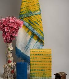 Yellow bagru hand block printed linen suits with zari border unstitched