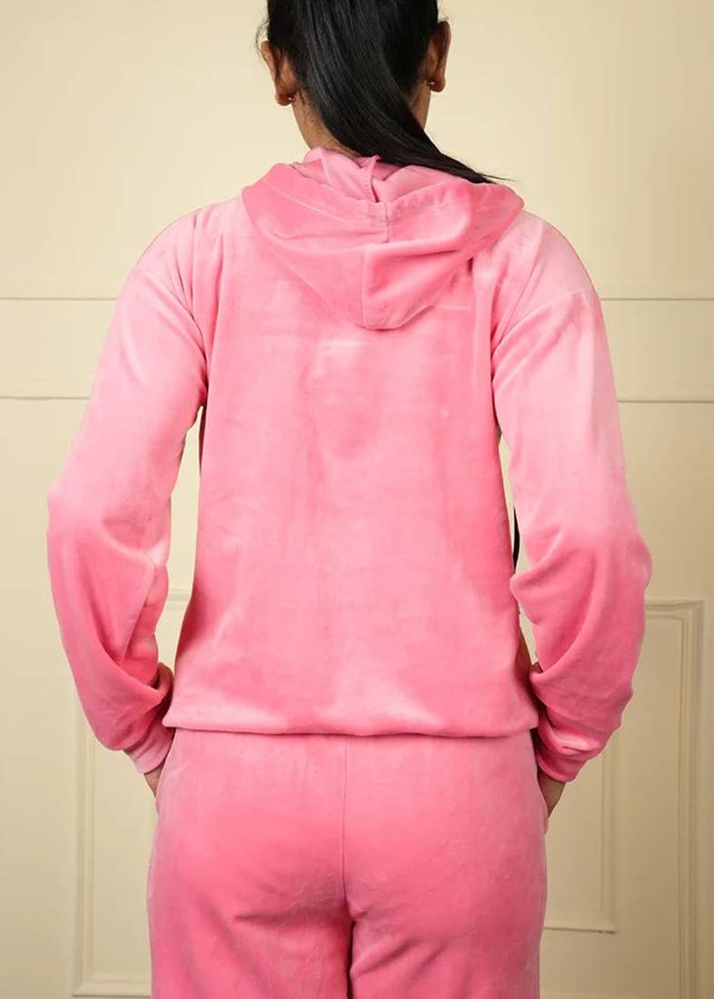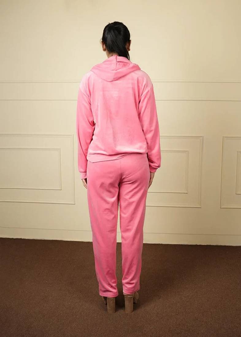 | Product Name | Pink Velvet Supersoft Strecthable Fabric Zipper With Hoddie Pattern Free Size Co Ord Set | |