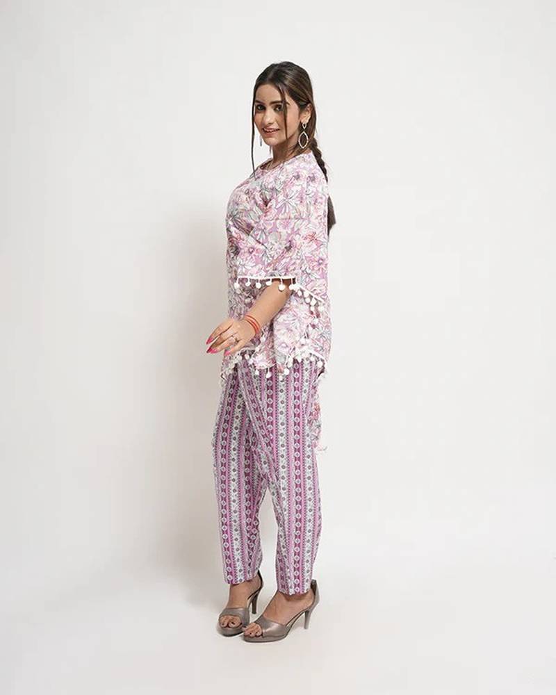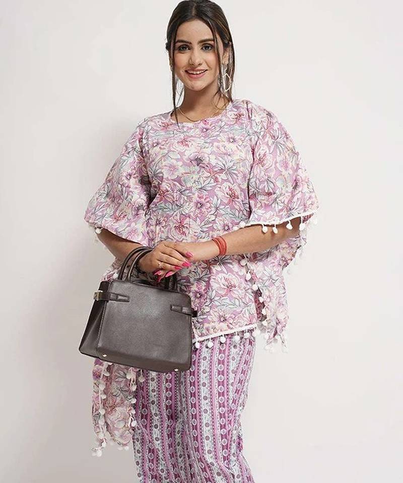 | Product Name | Purple Cotton Blend Floral Print Free Size Co Ord Set | |