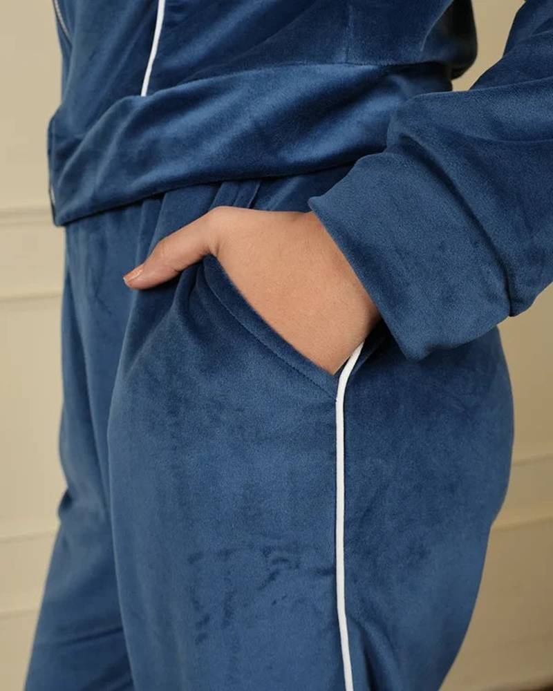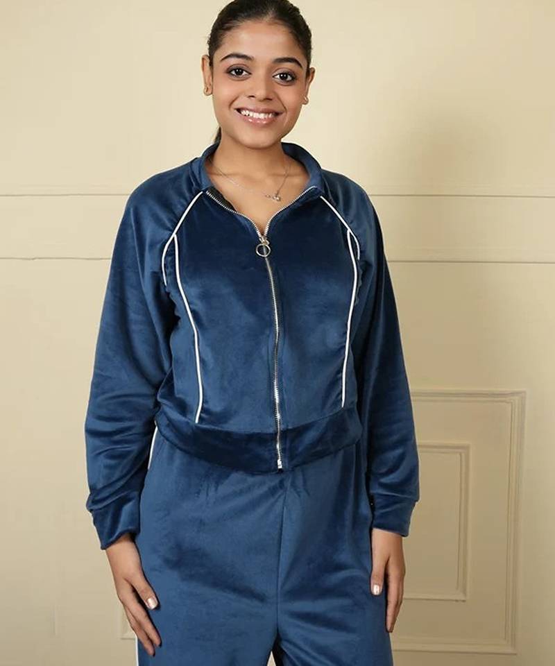 | Product Name | Teal Blue Velvet Supersoft Zipper Free Size Co Ord Set | |