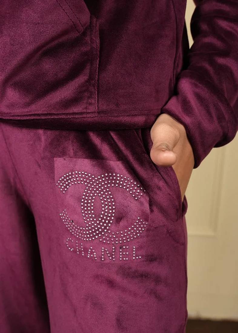 Wine velvet supersoft strecthable sarwoski free size co ord set
