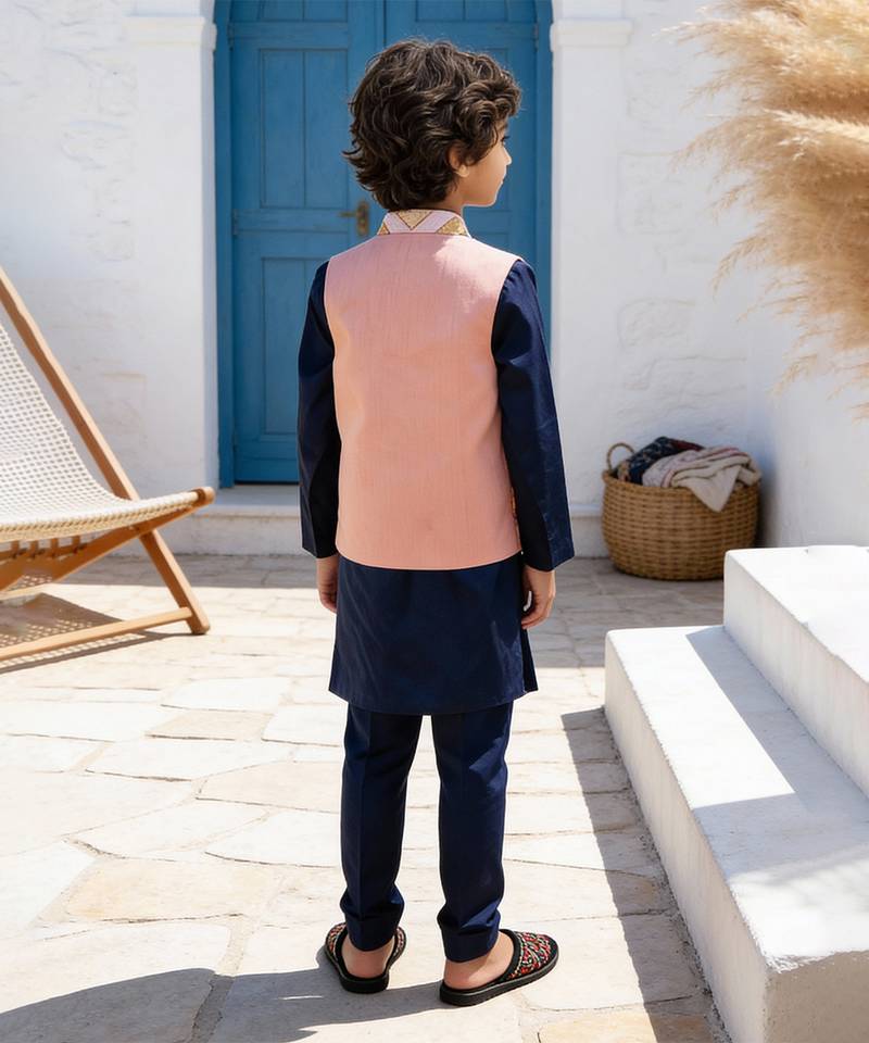 | Product Name | Navy Blue Embroidered Glace Cotton Nehru Jacket Set | |