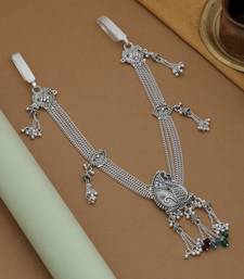 | Product Description | Kamarband Length: 42.00 Cm X Width: 10.00 Cm | Metal: Alloy With Good Quality Silver Plated | Color: Assorted | Stone: Glass Stone | Gross Weight: 76.00 Grams | Package Content: 1 Piece Of Kamar Juda |