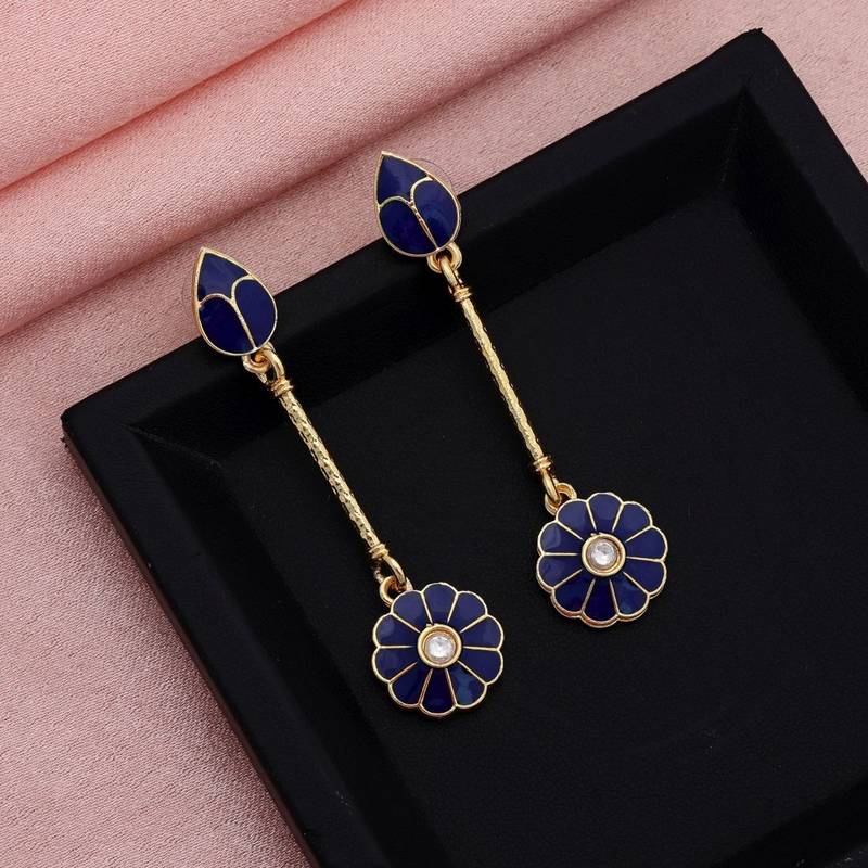 | Product Description | Earring Length: 7.00 Cm X Width: 1.70 Cm | Metal: Alloy With Good Quality Gold Plated | Color: Blue | Stone: Glass Stone | Gross Weight: 11.00 Grams | Package Content: 1 Pair Of Earrings | Back Finding: Post With Friction Back X Earring Style: Drop |