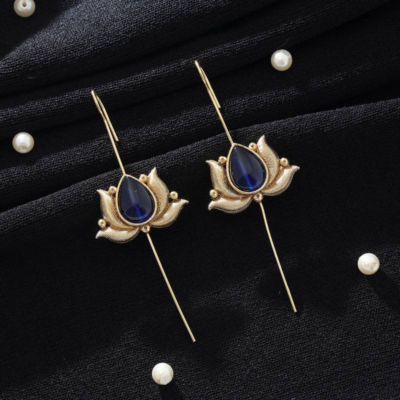 | Product Description | Earring Length: 8.00 Cm X Width: 3.00 Cm | Metal: Alloy With Good Quality Gold Plated | Color: Blue | Stone: Glass Stone | Gross Weight: 11.00 Grams | Package Content: 1 Pair Of Earrings | Back Finding: Fishhook X Earring Style: Drop |