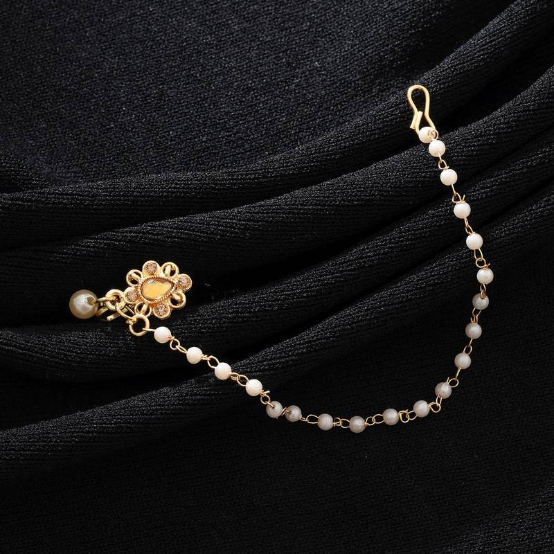 | Product Description | Chain Length: 14.50 Cm X Width: 1.20 Cm | Nose Nath Length: 2.50 Cm X Width: 1.20 Cm | Metal: Alloy With Good Quality Gold Plated | Color: Gold | Stone: Rhinestone & Beads | Gross Weight: 3.00 Grams | Package Content: 1 Piece Of Nose Nath |