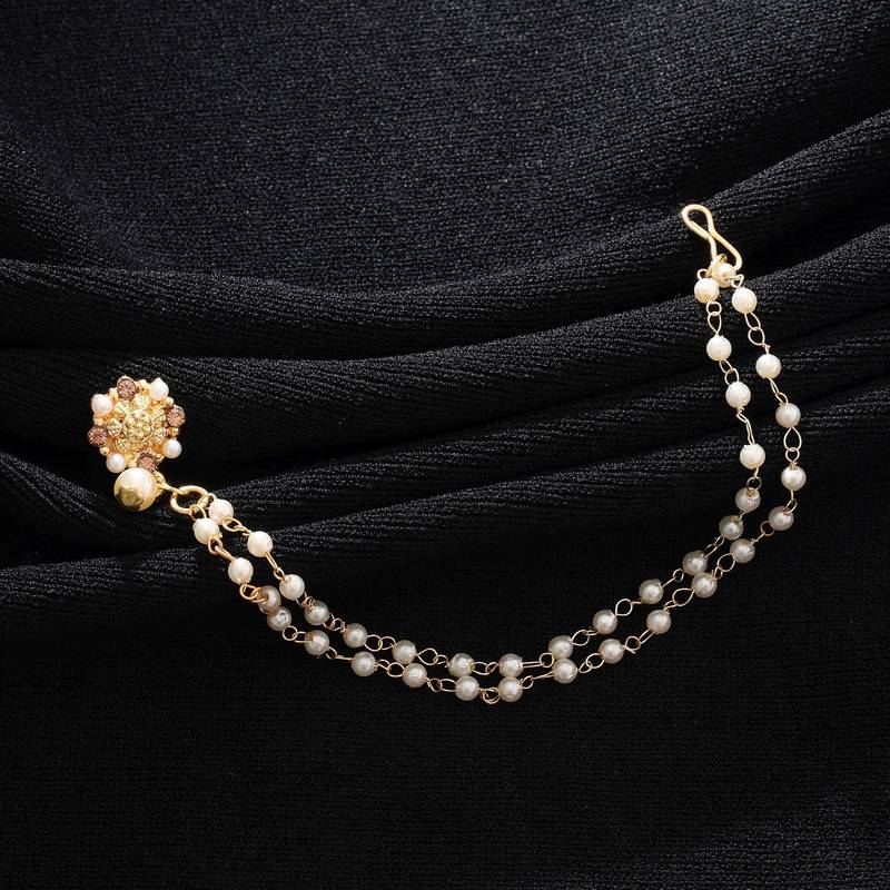 | Product Description | Chain Length: 13.50 Cm X Width: 1.30 Cm | Nose Nath Length: 2.40 Cm X Width: 1.30 Cm | Metal: Alloy With Good Quality Gold Plated | Color: Gold | Stone: Rhinestone & Beads | Gross Weight: 4.00 Grams | Package Content: 1 Piece Of Nose Nath |