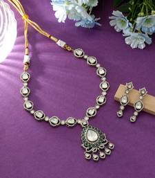 | Product Description | Adjustable Rope | Necklace Length: 27.00 Cm X Width: 1.30 Cm | Pendant Length: 5.00 Cm X Width: 3.60 Cm | Earring Length: 4.60 Cm X Width: 1.30 Cm | Metal: Brass With Good Quality Gold Plated | Color: Green | Stone: American Diamond & Moissanite Stone | Gross Weight: 70.00 Grams | Package Content: 1 Piece Of Necklace/1 Pair Of Earrings | Back Finding: Post With Friction Back X Earring Style: Dangle |