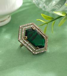 | Product Description | Ring Size: Adjustable | Diameter Length: 3.60 Cm X Width: 2.30 Cm | Metal: Brass With Good Quality Apala Polish // Mehandi Gold Plated | Color: Green | Stone: American Diamond & Monalisa Stone | Gross Weight: 10.00 Grams | Package Content: 1 Piece Of Ring |