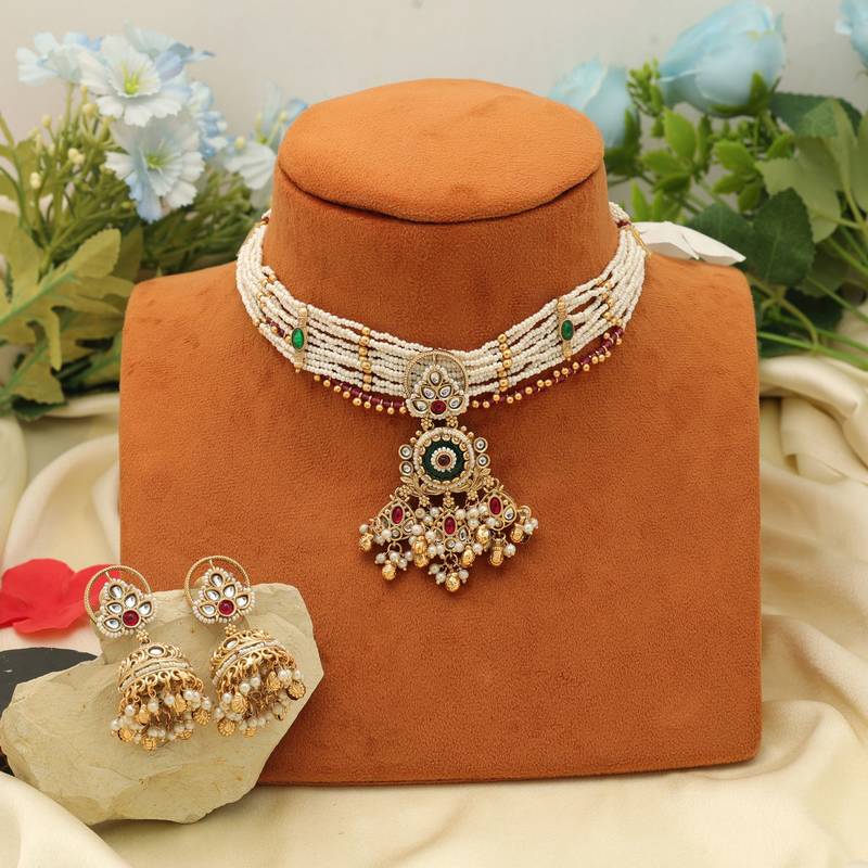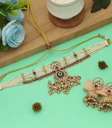 | Product Name | Green Color Choker Matte Gold Necklace Set | |
