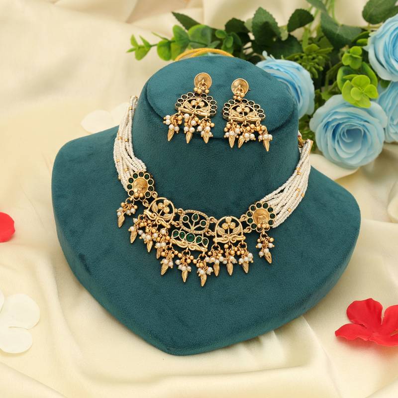 | Product Name | Green Color Choker Matte Gold Necklace Set | |