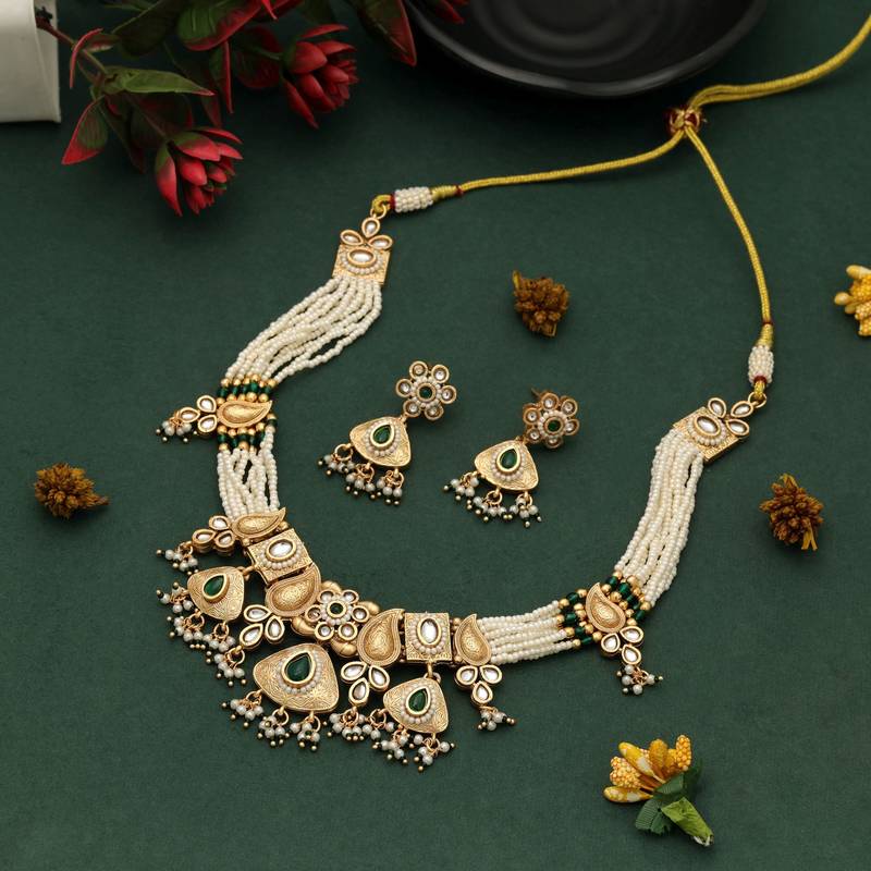 | Product Name | Green Color Matte Gold Necklace Set | |