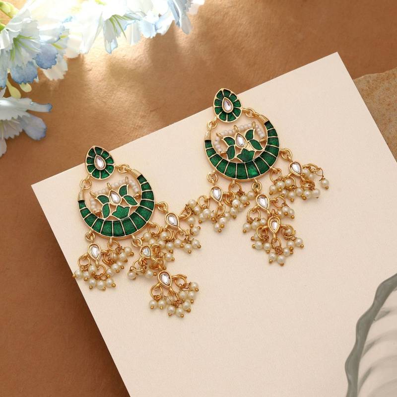 Green color meenakari earrings