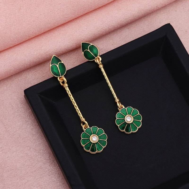 | Product Description | Earring Length: 7.00 Cm X Width: 1.70 Cm | Metal: Alloy With Good Quality Gold Plated | Color: Green | Stone: Glass Stone | Gross Weight: 11.00 Grams | Package Content: 1 Pair Of Earrings | Back Finding: Post With Friction Back X Earring Style: Drop |