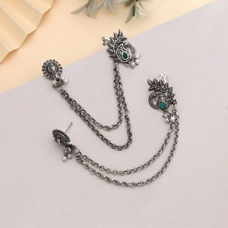 Green color oxidised ear cuff
