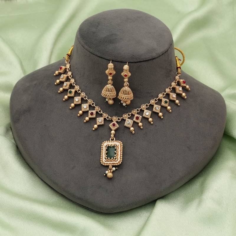 | Product Name | Green & Rani Color Matte Gold Necklace Set | |