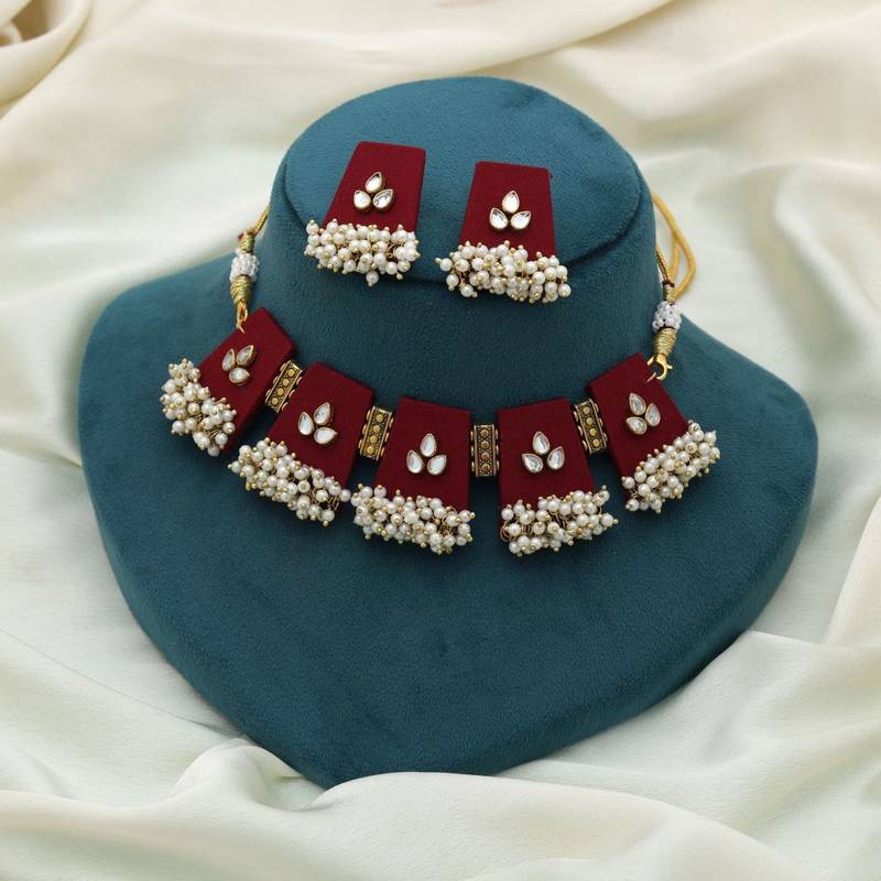 Maroon color choker handcraft necklace set