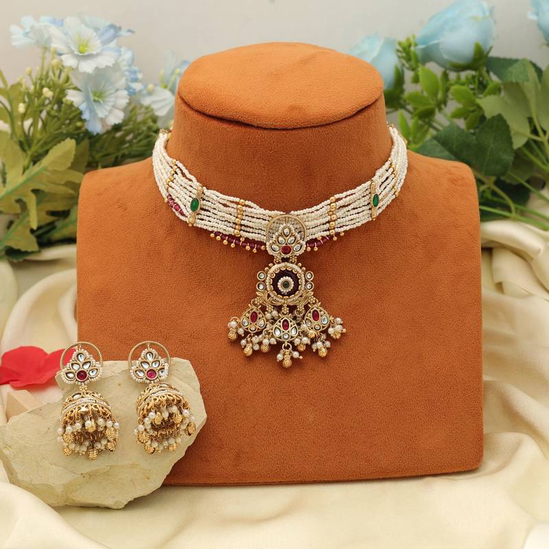 | Product Name | Maroon Color Choker Matte Gold Necklace Set | |