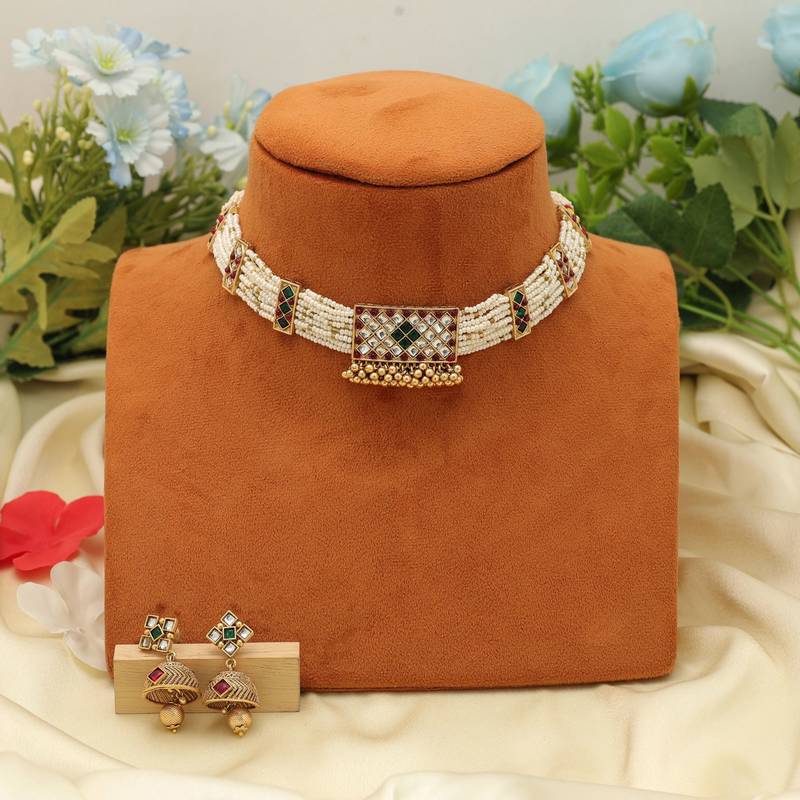 | Product Name | Maroon & Green Color Choker Matte Gold Necklace Set | |