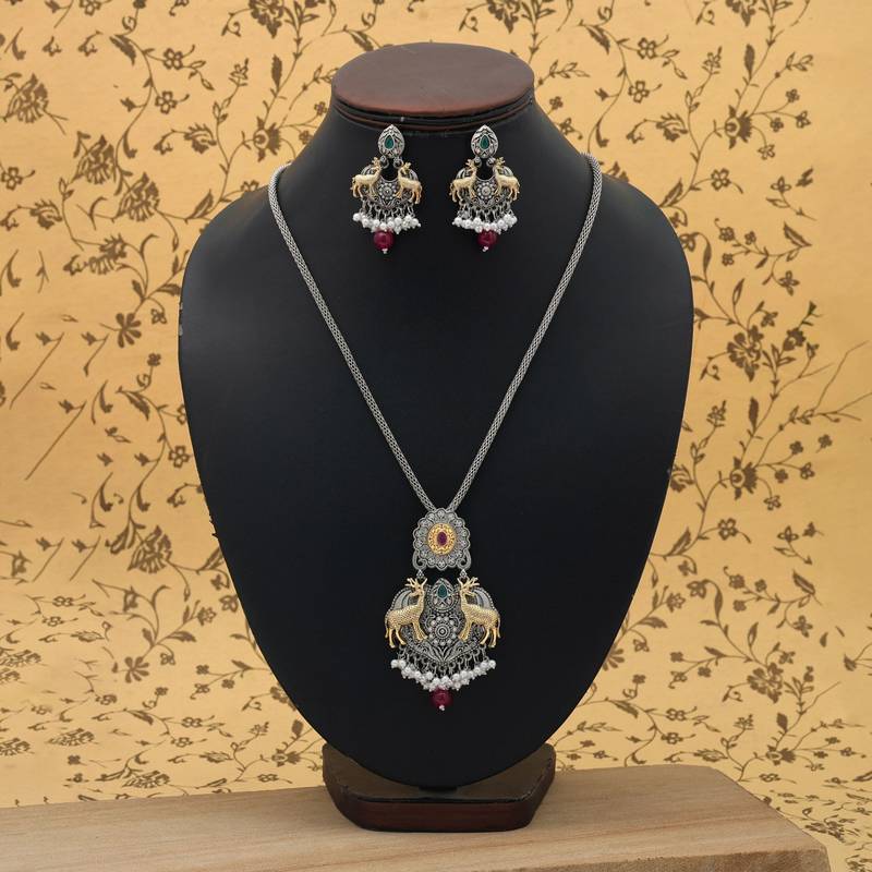 | Product Name | Maroon & Green Color Dual Tone Oxidised Necklace Set | |