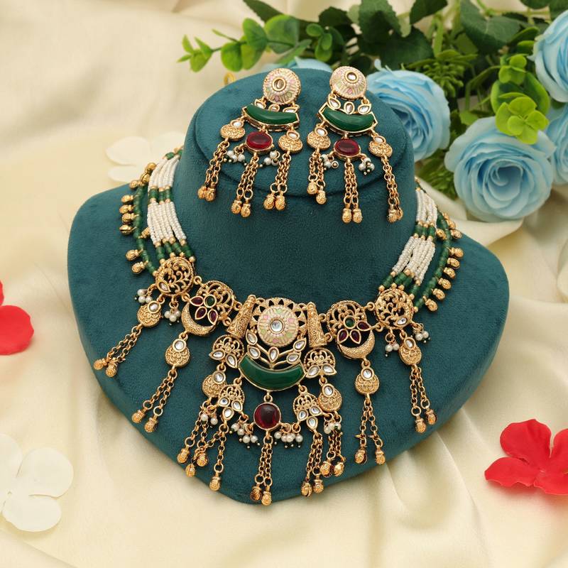| Product Name | Maroon & Green Color Matte Gold Necklace Set | |