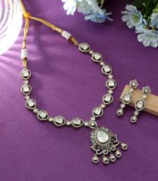 | Product Description | Adjustable Rope | Necklace Length: 27.00 Cm X Width: 1.30 Cm | Pendant Length: 5.00 Cm X Width: 3.60 Cm | Earring Length: 4.60 Cm X Width: 1.30 Cm | Metal: Brass With Good Quality Gold Plated | Color: Multi | Stone: American Diamond & Moissanite Stone | Gross Weight: 70.00 Grams | Package Content: 1 Piece Of Necklace/1 Pair Of Earrings | Back Finding: Post With Friction Back X Earring Style: Dangle |