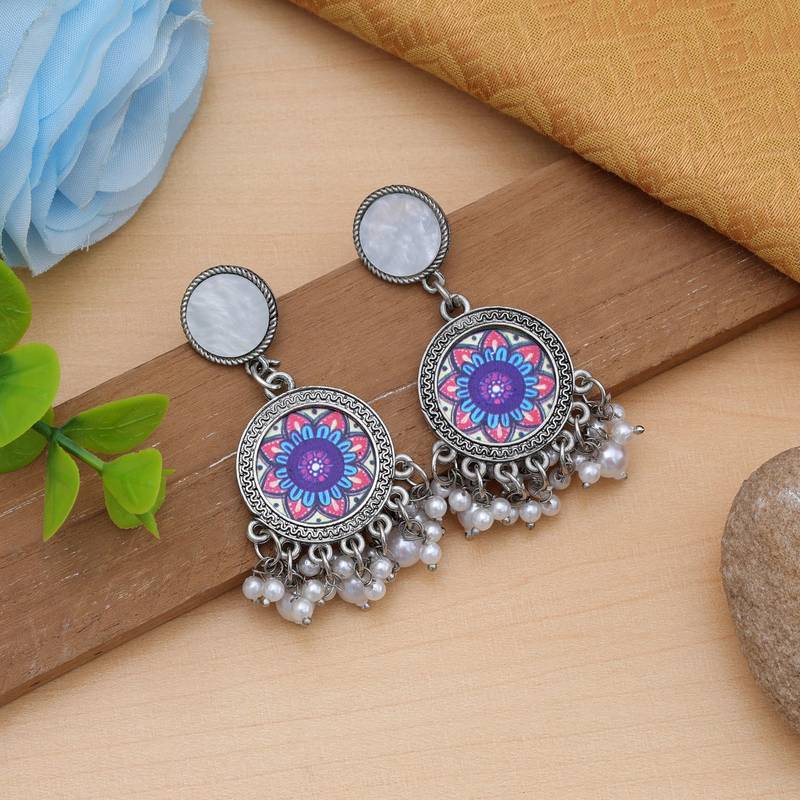 | Product Description | Earring Length: 5.50 Cm X Width: 2.20 Cm | Metal: Alloy With Good Quality Silver Plated | Color: Multi | Gross Weight: 12.00 Grams | Package Content: 1 Pair Of Earrings | Back Finding: Post With Friction Back X Earring Style: Dangle |
