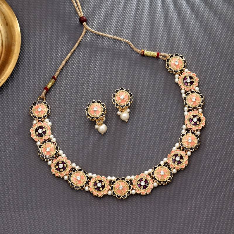 | Product Name | Peach & Purple Color Meenakari Necklace Set | |