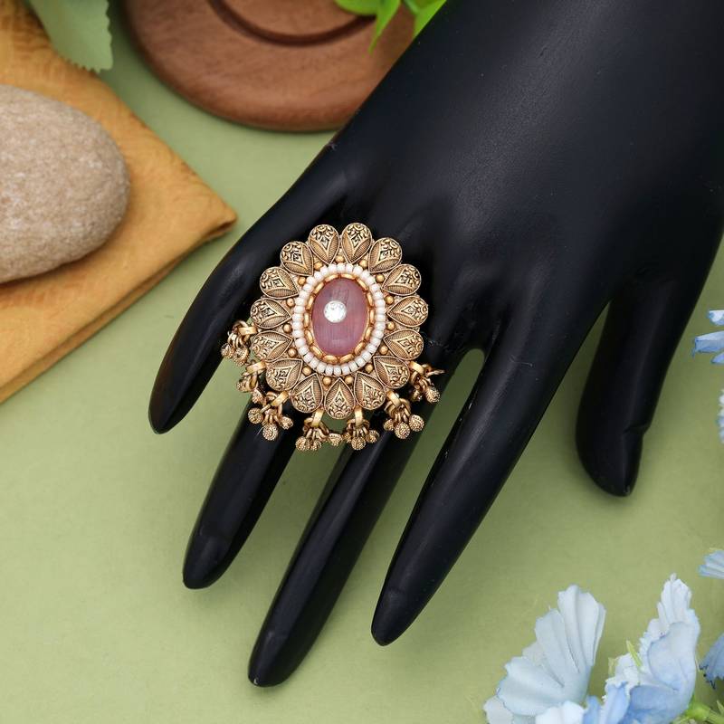| Product Description | Ring Size: Adjustable | Diameter Length: 4.30 Cm X Width: 3.60 Cm | Metal: Alloy With Good Quality Gold Plated | Color: Pink | Stone: Glass Stone | Gross Weight: 15.00 Grams | Package Content: 1 Piece Of Ring |
