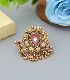 | Product Description | Ring Size: Adjustable | Diameter Length: 4.00 Cm X Width: 3.50 Cm | Metal: Alloy With Good Quality Gold Plated | Color: Pink | Stone: Glass Stone | Gross Weight: 16.00 Grams | Package Content: 1 Piece Of Ring |