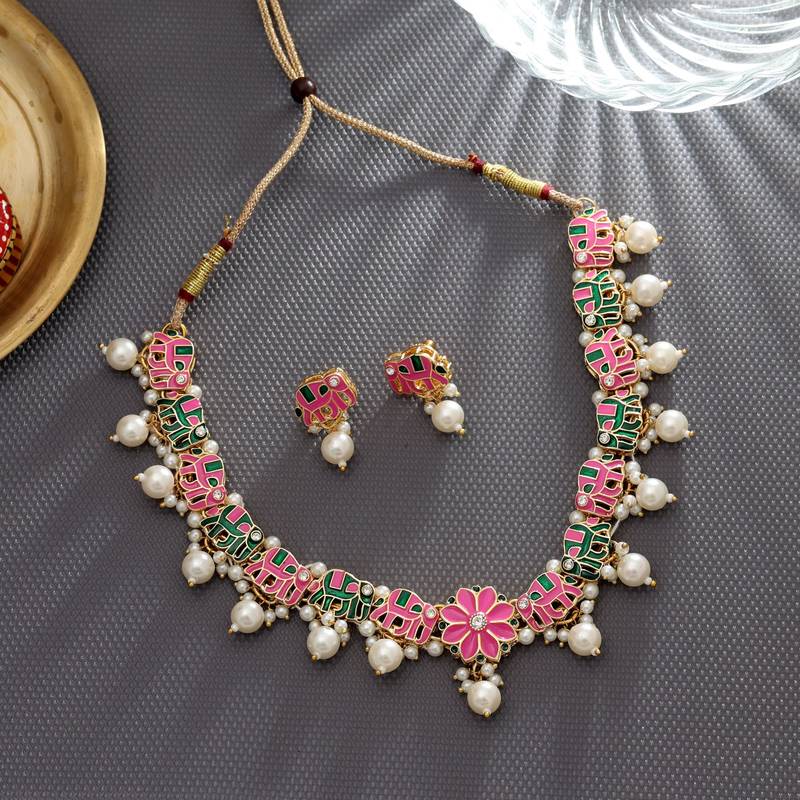 | Product Name | Pink & Green Color Meenakari Necklace Set | |