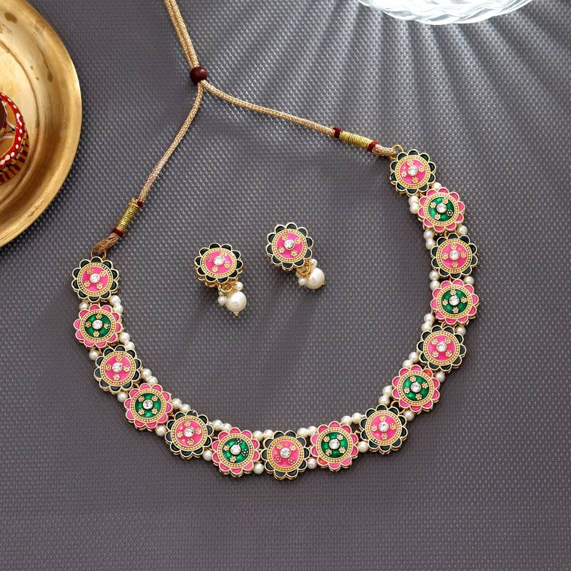| Product Name | Pink & Green Color Meenakari Necklace Set | |