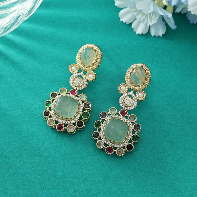 | Product Name | Pista Green Color American Diamond Earrings | |