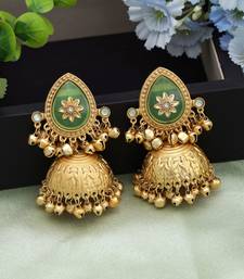 | Product Description | Earring Length: 7.80 Cm X Width: 4.00 Cm | Metal: Alloy With Good Quality Gold Plated | Color: Pista Green | Stone: Monalisa Stone | Gross Weight: 49.00 Grams | Package Content: 1 Pair Of Earrings | Back Finding: Post With Friction Back X Earring Style: Jhumka |