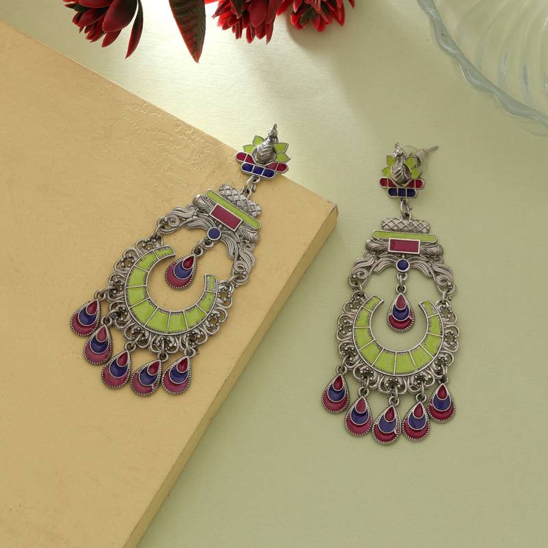 | Product Name | Pista Green Color Meena Work Oxidised Earrings | |