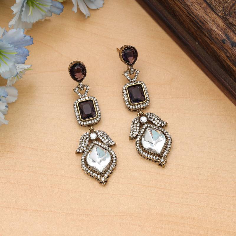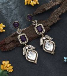 | Product Description | Earring Length: 7.20 Cm X Width: 2.20 Cm | Metal: Brass With Good Quality Apala Polish // Mehandi Gold Plated | Color: Purple | Stone: American Diamond & Monalisa Stone | Gross Weight: 24.00 Grams | Package Content: 1 Pair Of Earrings | Back Finding: Post With Friction Back X Earring Style: Dangle |