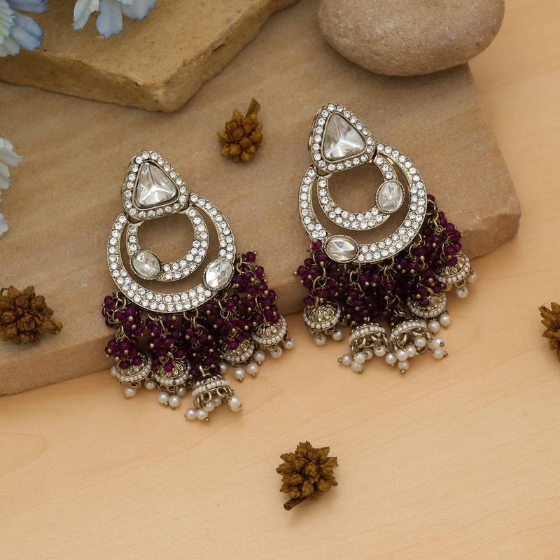 Purple color kundan earrings