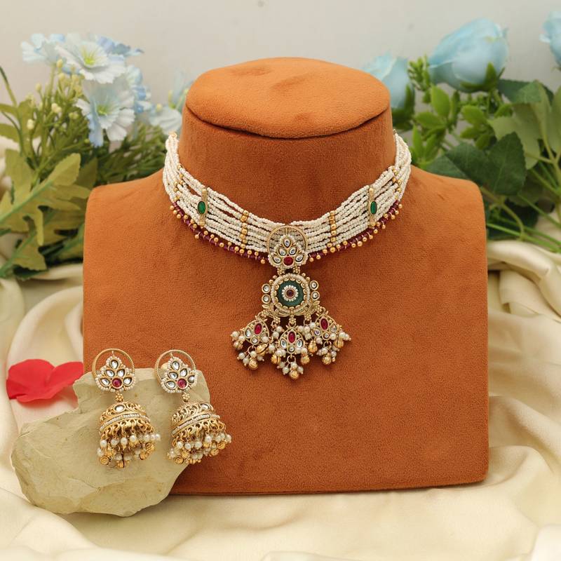 | Product Name | Rama Green Color Choker Matte Gold Necklace Set | |