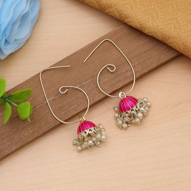| Product Description | Earring Length: 5.40 Cm X Width: 1.60 Cm | Metal: Alloy With Good Quality Gold Plated | Color: Rani | Stone: Beads | Gross Weight: 10.00 Grams | Package Content: 1 Pair Of Earrings | Back Finding: Fish Hook X Earring Style: Jhumki |