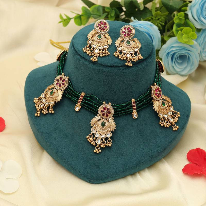 | Product Name | Rani & Green Color Choker Matte Gold Necklace Set | |
