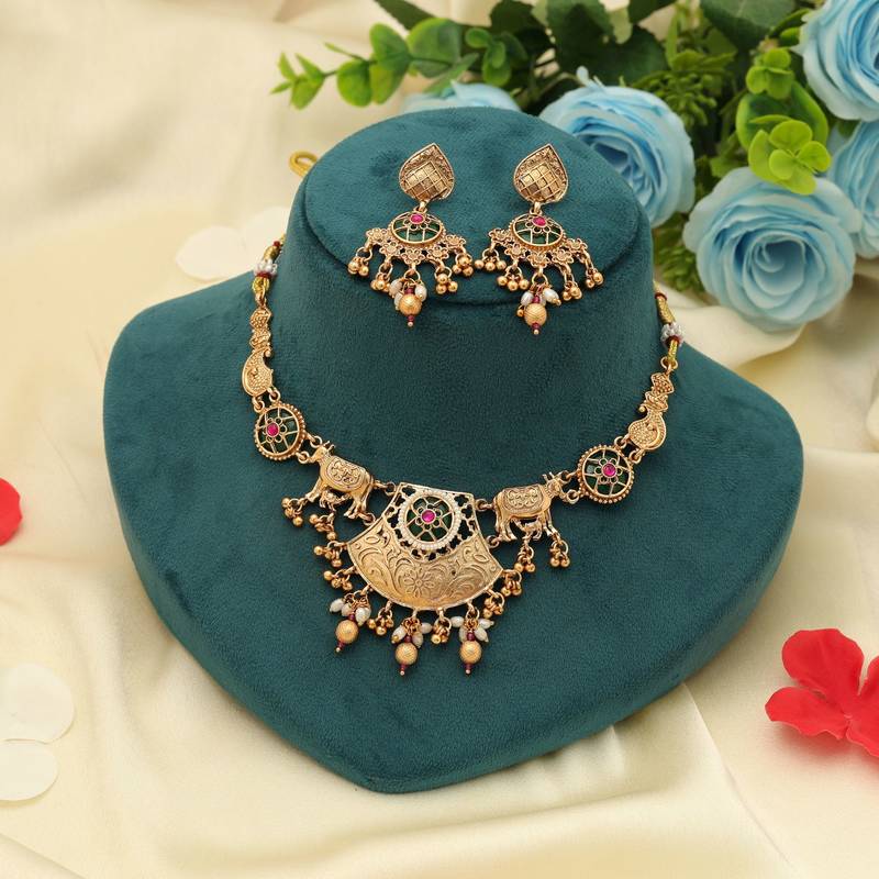 | Product Name | Rani & Green Color Matte Gold Necklace Set | |