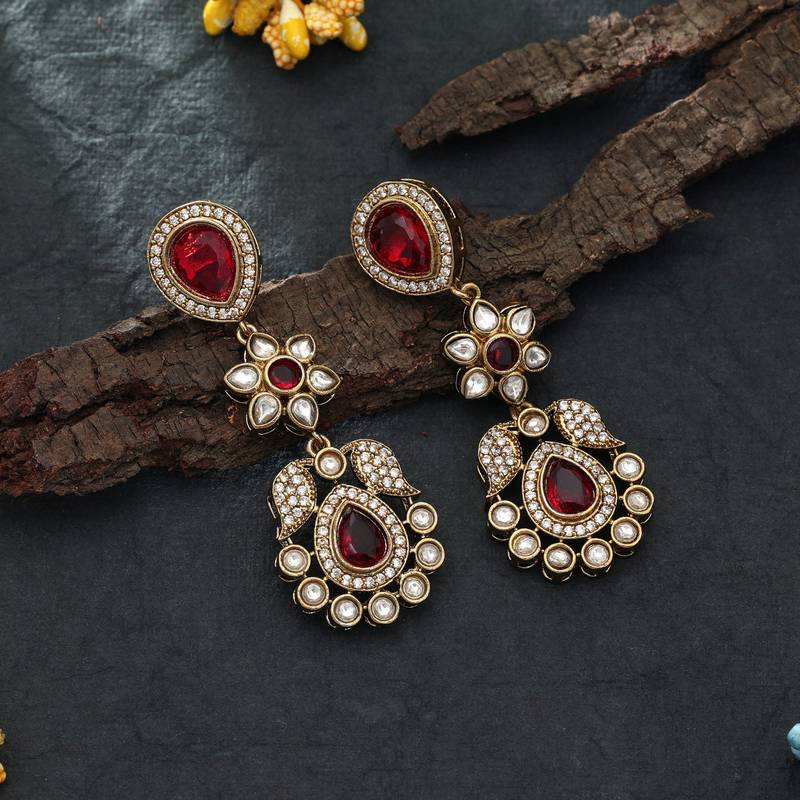 | Product Description | Earring Length: 6.10 Cm X Width: 2.20 Cm | Metal: Brass With Good Quality Apala Polish // Mehandi Gold Plated | Color: Red | Stone: American Diamond & Monalisa Stone | Gross Weight: 23.00 Grams | Package Content: 1 Pair Of Earrings | Back Finding: Post With Friction Back X Earring Style: Dangle |