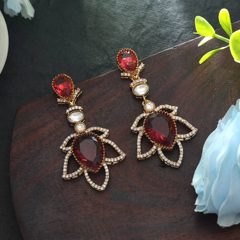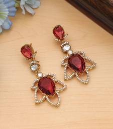| Product Description | Earring Length: 6.20 Cm X Width: 3.20 Cm | Metal: Brass With Good Quality Gold Plated | Color: Red | Stone: American Diamond & Monalisa Stone | Gross Weight: 23.00 Grams | Package Content: 1 Pair Of Earrings | Back Finding: Post With Friction Back X Earring Style: Dangle |
