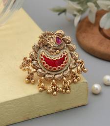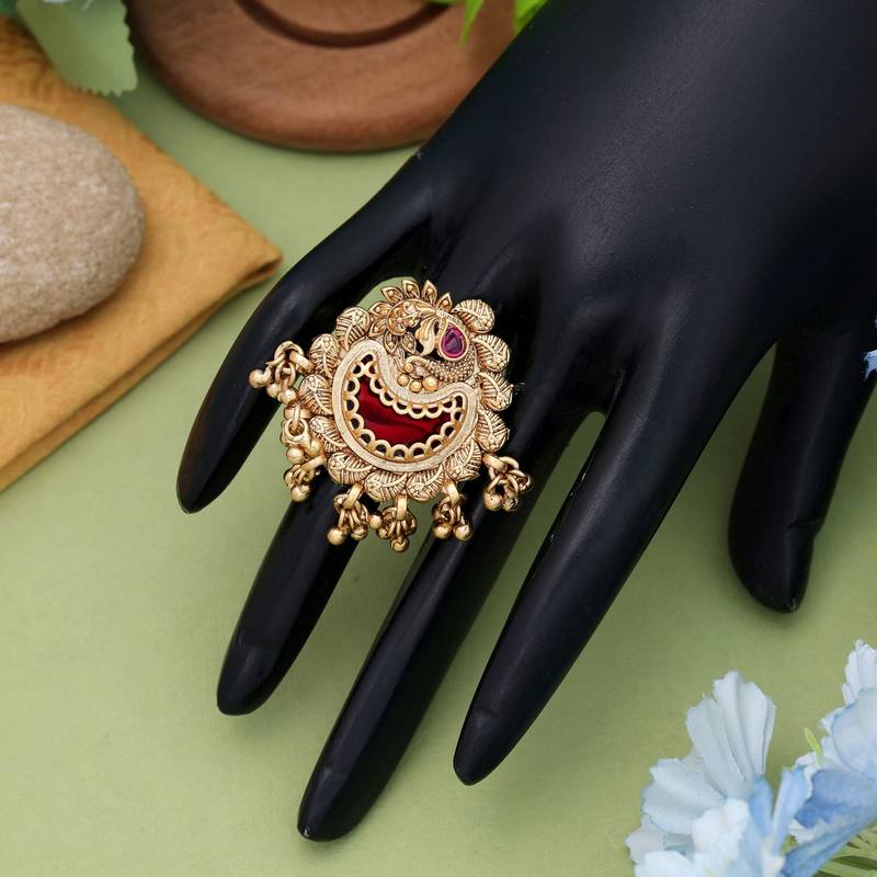 | Product Description | Ring Size: Adjustable | Diameter Length: 4.00 Cm X Width: 3.30 Cm | Metal: Alloy With Good Quality Gold Plated | Color: Red | Stone: Glass Stone | Gross Weight: 15.00 Grams | Package Content: 1 Piece Of Ring |