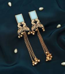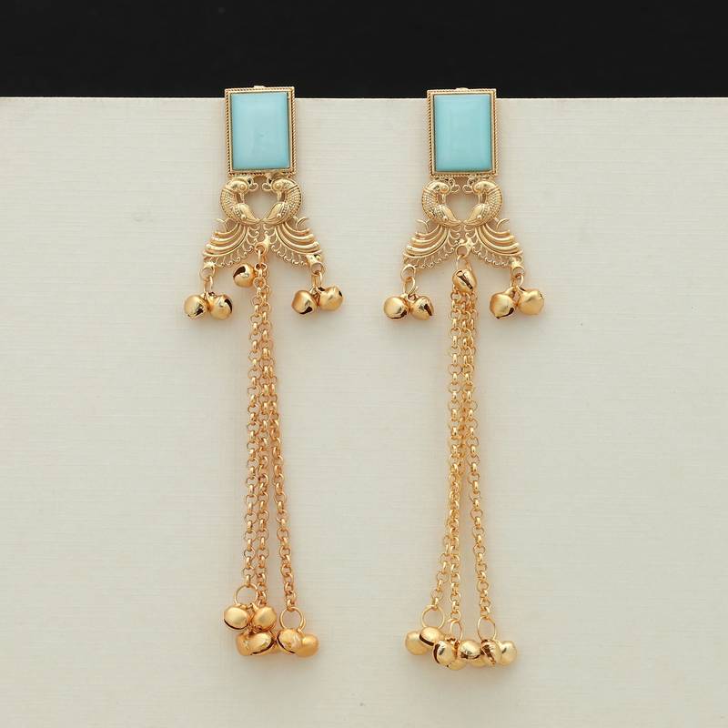 | Product Description | Earring Length: 13.50 Cm X Width: 2.70 Cm | Metal: Alloy With Good Quality Gold Plated | Color: Sky Blue | Stone: Glass Stone | Gross Weight: 27.00 Grams | Package Content: 1 Pair Of Earrings | Back Finding: Post With Friction Back X Earring Style: Chandelier |
