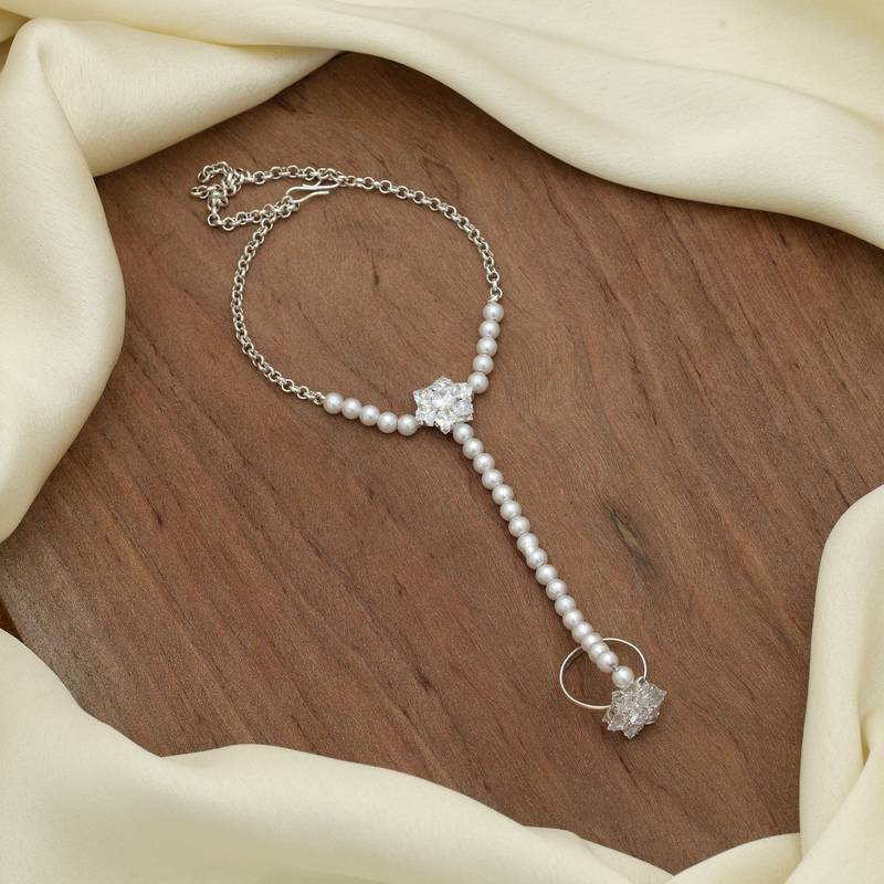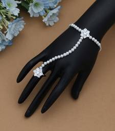 | Product Description | Chain Adjustable | Hath Phool Length: 9.00 Cm X Width: 6.00 Cm | Metal: Alloy With Good Quality Silver Plated | Color: White | Stone: Glass Stone | Gross Weight: 12.00 Grams | Package Content: 1 Piece Of Hath Phool |