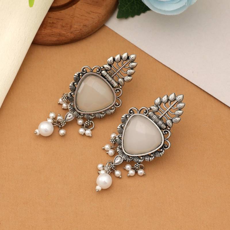 | Product Description | Earring Length: 6.00 Cm X Width: 2.70 Cm | Metal: Alloy With Good Quality Silver Plated | Color: White | Stone: Glass Stone | Gross Weight: 15.00 Grams | Package Content: 1 Pair Of Earrings | Back Finding: Post With Friction Back X Earring Style: Dangle |